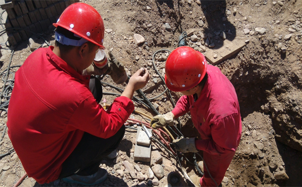 2016年4月12日,青海省某燃氣公司為了燃氣管道的安全運營,委托甘肅拓維地理信息工程有限公司進行26公里埋地鋼質管道進行外防腐層破損檢測以及陰極保護系統評估,我公司的技術人員利用英國雷迪PCM+管道電流測繪系統,利用交變電流梯度法,通過在管道和大地之間施加某一頻率的正弦電壓,給待檢測的管道發射檢測信號電流,在地面上沿路由檢測由管道電流產生交變電磁場的強度及變化規律。通過管道上方地面的磁場強度換算出管中電流的變化,據此可以判斷出管道的支線位置或破損缺陷等。